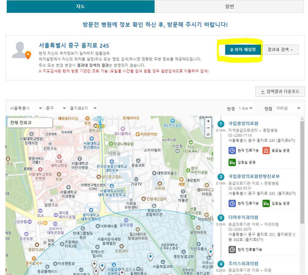 아래 사이트를 방문하여 내 위치를 설정한 뒤 내 주변 병원을 찾으시면 됩니다.
